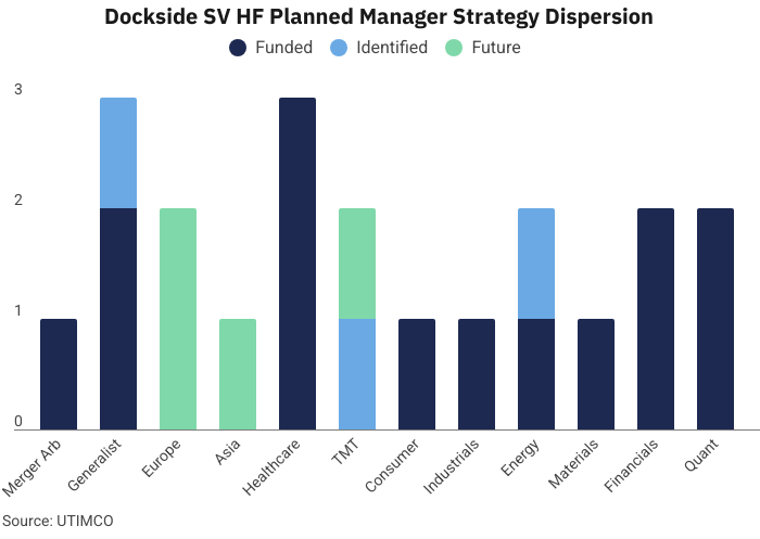 In recent disclosures, UTIMCO describes its relationship with Dockside as having “reached critical mass across the endowment.” They note that Dockside’s portfolio has reached a gross market value of $6 billion across three strategies, and that the stable value hedge fund strategy plans to add at least six managers over the next 18 months, primarily in its Europe, Asia and TMT-focused strategies.